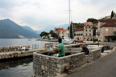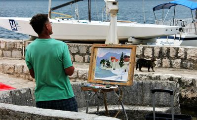 Именно такого художника, пишущего маслом по холсту морской пейзаж, наблюдали однажды кошки, гулявшие сами по себе по набережной небольшого городка Пераст, что в Черногории.