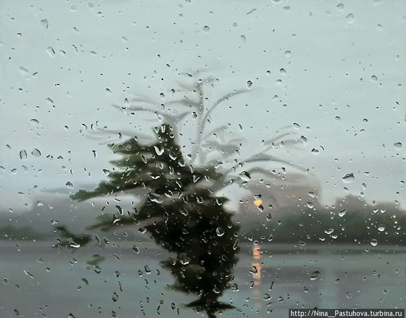 Восхищает, как художник передаёт движение капелек воды по лобовому стеклу.