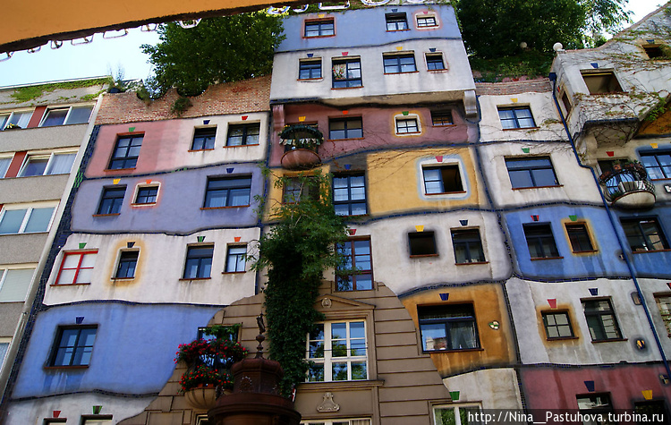 После осмотра венских достопримечательностей: Хофбурга, оперы, после Альбертины и Бельведера, церквей и соборов Вены, улиц города мы поехали смотреть "Дом Хундертвассера" и небольшой торгово-выставочный центр, построенные художником Ф. Хундертвассером совместно с архитекторами Йосефом Кравина и Петером Пеликаном в 1986г.