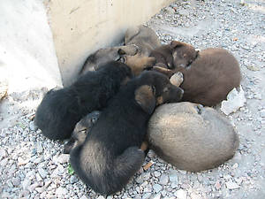 Гуляла и встретила стаю игруче-кусачих щенов. На обратной дороге тоже их встретила, они спали друг на друге без задних лап), у кого только нос торчал, у кого — только хвост.