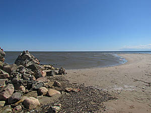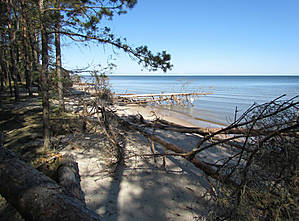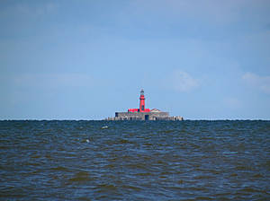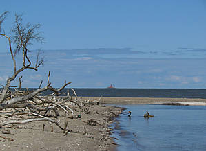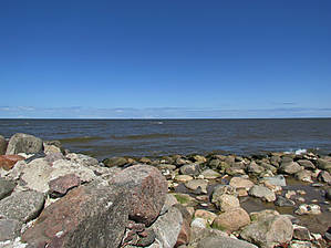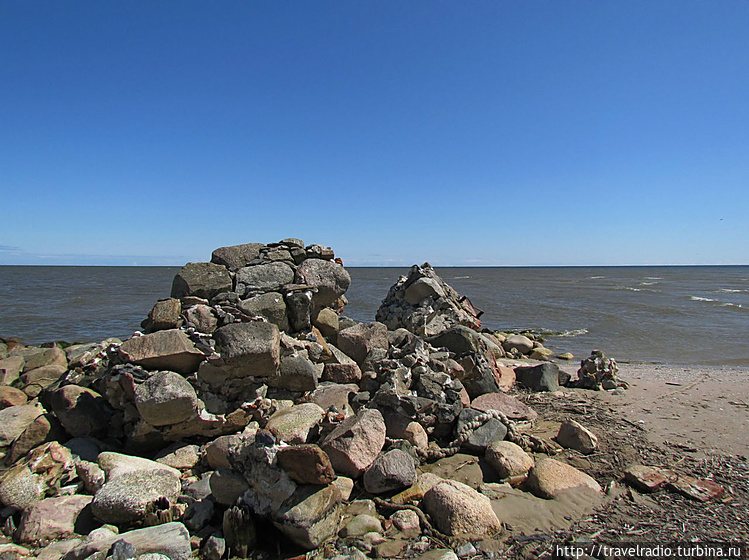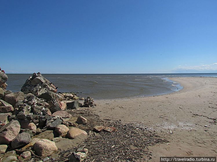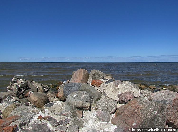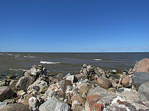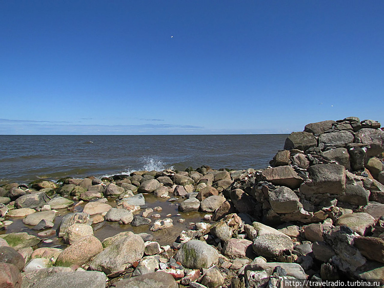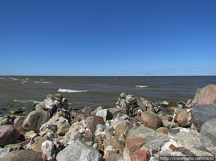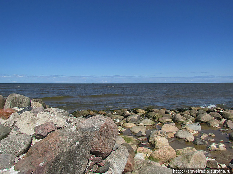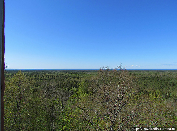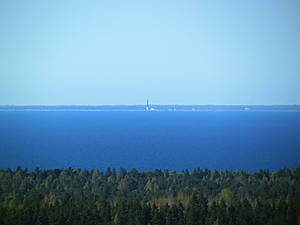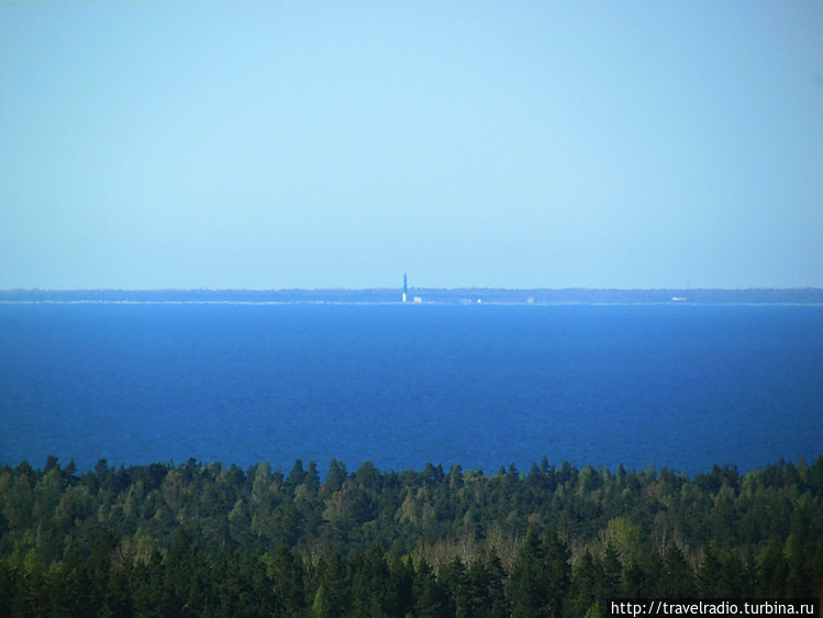 Вид с маяка Слитере. На первом снимке — так видно из окна море без оптики, на втором с увеличением — Ирбенский пролив, а за ним Сааремаа, Эстония.