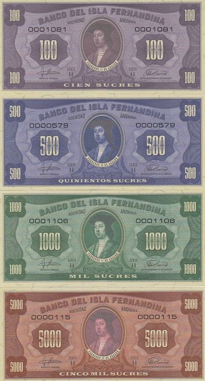 Сотни триллионов денег на 1 квадратный километр суши номинал у них гораздо меньше: 5, 10, 20 и 50 сукре,