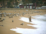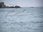 Вчера утром, сначала на море были только я, рыбаки и чайки.. Много чаек. Я их фотографировала. Хотя пасмурное небо и серое море наводили грусть, обедать решала в небольшой пиццерии на берегу. Села у окна, чтобы смотреть на лениво бегущие волны. Официант был не менее ленив и за пиццей наверное бегал в Италию (ах, Неаполь, абожаю его пиццу!)... Буквально за полчаса-час, выглянуло солнце, непонятно куда дев тучи. Может они растворились в море, покорившись его величеству лазурности, но все за считанные минуты наполнилось красками. Чаек согнали люди, лениво развалившиеся на песке, малыши размахивали руками, показывая всем как летают чайки :) Я не выдержала и стянув сапоги пошла кромкой белой пены. Вода, поначалу два три раза кольнула иголочками. Волны шуршали крупным песком. Жутко захотелось купаться. Ведь говорят же старожилы, что если с утра тучи, то в обед будет солнце! Но как в это трудно было поверить хмурым утром, когда собиралась на побережье, и забытый купальник лежал на дальней полке шкафа, заботливо убранный до следующего сезона...