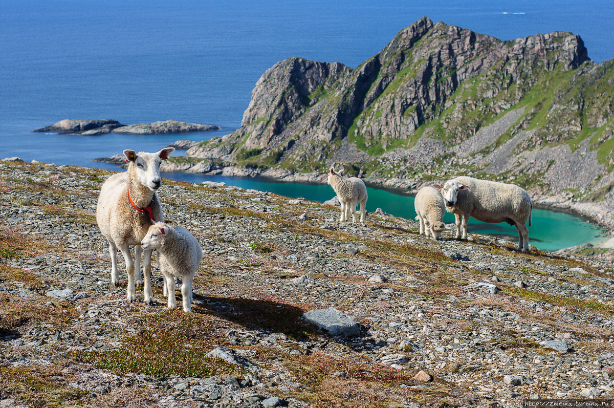 Радостью и восторгом для меня обернулись прогулки по холмам на Лофотенах — норвежцы разводят море овечек, которые свободно гуляют тут и там! Куда бы ты ни забрел, везде встретишь звон колокольчиков, пушистых ягнят с мамами — на вершине горы, из-под куста, в поле, и даже на заброшенном трамплине — везде я радовалась как ребенок и шла знакомиться с овечками.