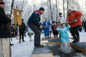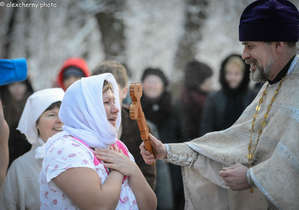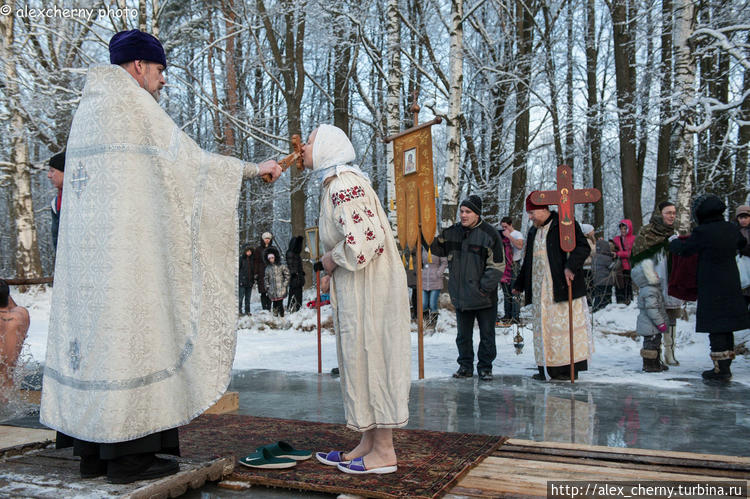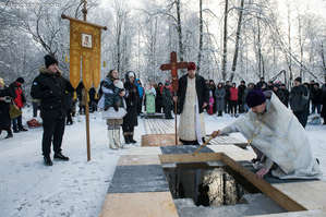 Крещение — один из самых древних христианских праздников в России обычно сопровождается массовыми купаниями в ледяной воде в специально прорубаемых и освещаемых прорубях-иорданях. Вначале воду надо освятить -водосвятие