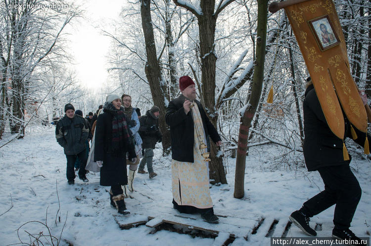 Священник из храма Святой Ольги, что возле усадьбы Знаменка освятил Иордань и воду со всех сторон.