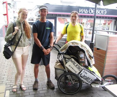 JENS KWASS, 38-ти лет от роду, идёт пешком через весь свет. Он много где уже путешествовал, а сейчас вышел из Германии и идёт в Австралию постепенно, пешком, по трассам основным. Как обычно, главная трудность в таком — бюрократы: русскую визу на год сделать ему не удалось, поэтому он дойдёт до Чебоксар (11-12 августа), до Казани (22-23 августа) и полетит в Германию за новой русской визой, оставив тележку где-нибудь на вписке или в хостеле на хранение. Потом с новой русской визой он отправится в Читу и Владивосток, потом Китай, паромом в Южную Корею и Японию и т.д., проект рассчитан на несколько лет. Из Владивостока он тоже полетит в Германию, ну за новыми визами, и родных повидать, а потом вернётся и продолжит путь.