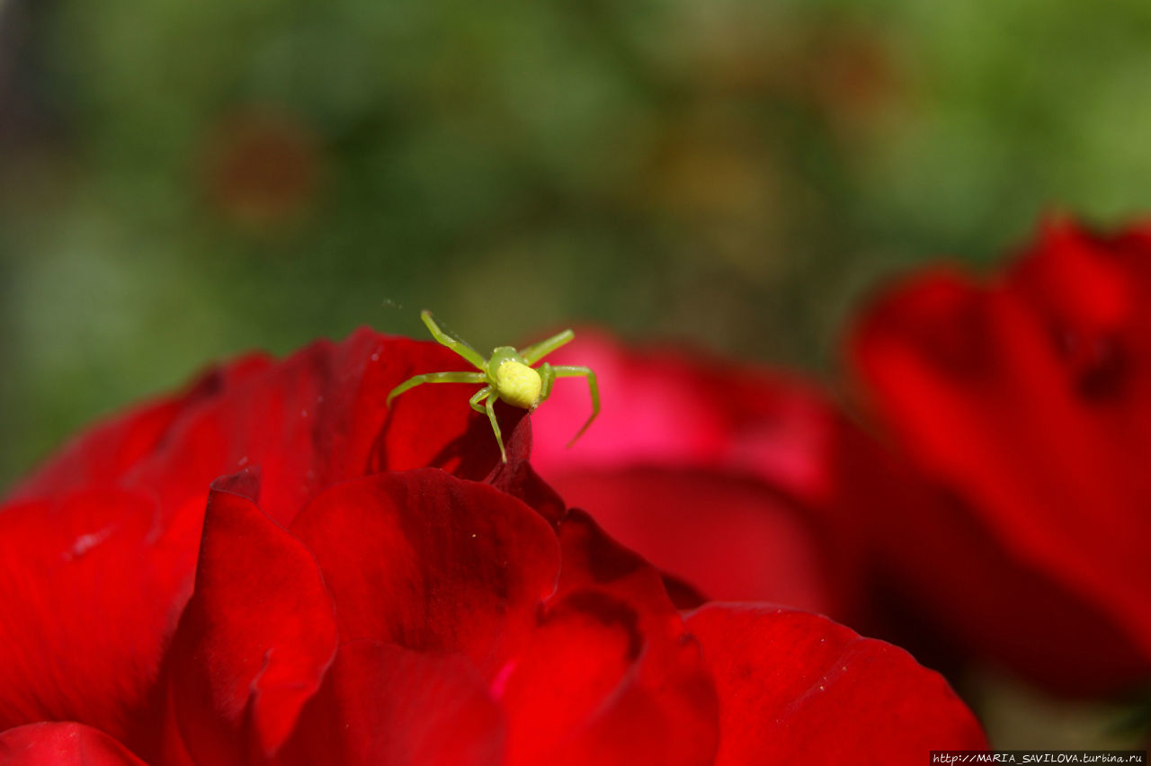Прошло совсем немного времени и вот я уже в Сочи, на берегу Чёрного моря, жду начала своего первого перехода до Стамбула на знаменитом корабле. Жарко, для меня очень жарко в плюс двадцать семь, иду в "Дендрарий" за прохладой. Мои любимые розы, увы, на самом солнцепёке, но не только они — маленький, желтый — и от того хорошо заметный на красных цветах, малыш — паучок, проворно сплетает паутину. Я думаю о том, что очень многое может изменить одна ниточка, одно слово и завтра уже в путь, пожелай мне удачи!