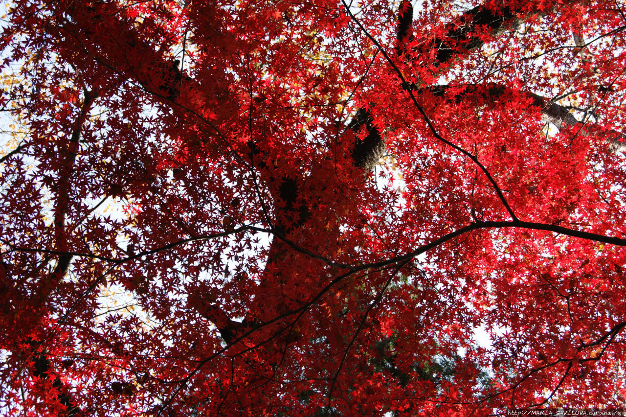 Но особенно чувство, что я ощущаю себя там, где нахожусь и это не сон, настигло меня на лавочке под красными клёнами — со мной была купленная в переходе метро булочка из креветок, теплый кофе из автомата, и проходящим мимо японцам я махала сувениром музея Гибли — рыбкой Поньо. И мы все были очень счастливы под этими красными листьями.