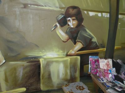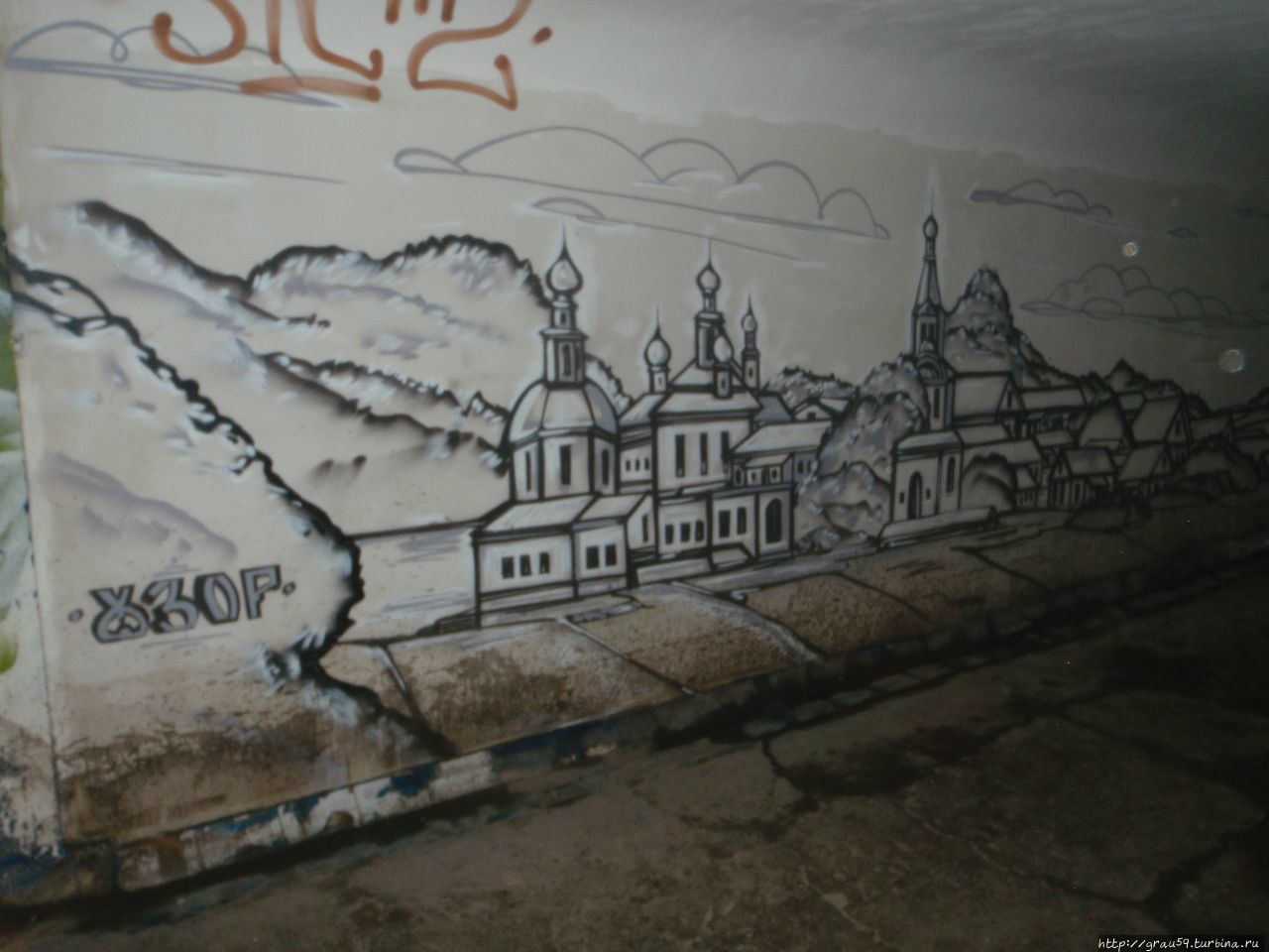 Я шел по проспекту Ленина и вдруг увидел граффити на стене подземного перехода. Спустился вниз. Там играл музыкант и возле одной из стен разместился торговый прилавок.