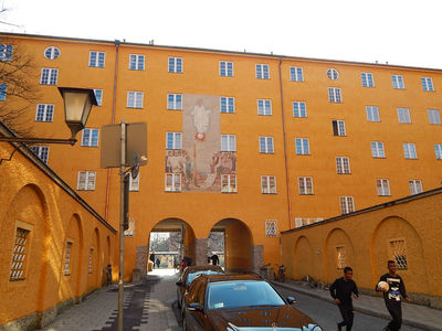 Город Солнца - Борстай на Дахауерштрассе, поэтому пересказывать историю не буду. Покажу свои фотографии. Если кто нибудь захочет сам наведаться в Борстай, садитесь на вокзале на трамвай 20 или 21 и едьте до остановки "Борстай".