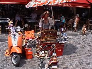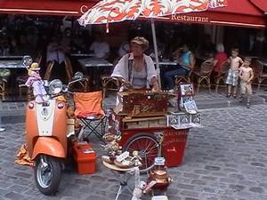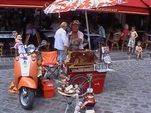 На небольшой площади в окружении уютных кафе расположилась знаменитая мадам Манивелль и её неизменная шарманка. Театр двух актрис и исполнительниц весёлых куплетов. В своём творчестве дамы сроднились между собой и их голоса стали похожи. При этом, каждая из них — первая скрипка. Вероятно, они даже одного возраста. Бурным ручьём льются по маленькой площади их задорные песни. Ни кого не оставят они равнодушными. Слушая их, хочется веселиться и ноги сами ведут нас в кафе.
