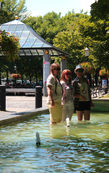 Не Нептуном единым привлекателен Фредериксборг. Помимо прочего имеется там чудный сад, а в саду каскадный фонтан или, точнее, каскад фонтанов, спускающихся к озеру, обрамляющему дворец. Вот так по-датски лаконично и стильно — в лучших скандинавских традициях, так сказать. В этом же тренде оформлен и регулярный парк. Небольшие фонтаны — "одноструйки" сами по себе малопривлекательны, на мой взгляд, но всегда являются прекрасным завершающим аккордом ландшафтной композиции. А вот так это выглядит в Потсдаме в парке Сан-Суси. Это уже розарий очаровательного замка Эгесков, что находится на острове Фюн в Дании. А в варшавском парке Лазенки стремящаяся вверх струйка придаёт очарования пруду, но практически теряется на фоне зелени. Схожая ситуация и в венском кур-парке Оберлаа. А в саду дворца Браницких в польском Белостоке фонтаны -"одноструйки" перемешались с белоснежными скульптурами — попробуй-ка, отыщи! Скульптуры Сан-Суси, наоборот, подчёркивают водяную доминанту. А здесь, всё в тех же Лазенках, вода вступает в замечательный тандем с яркими летниками — космеями. Этот же дуэт звучит совсем иначе в Германии в Королевской усадьбе Линдерхоф. Другие монархи, уже в Швеции, предпочли видеть струю падающей в объятия цветов. Знаменитый сад Софиеро, Хельсингборг. А пражане "разбавили пару" третьим элементом — живыми рыбками. Ещё одна струйка, направленная вниз, обнаруживается снова в Швеции — в фонтанной группе стокгольмского парка Миллесгорден. Сюда мы заглянем ещё не раз, кстати — примечательное место! А вот если струя помощнее, то и вид у фонтана совсем иной — где-то даже торжественный. Яркий тому пример — знаменитый дрезденский Цвингер. Или парк мюнхенского Нимфенбурга. Очень идёт такой фонтан и Линдерхофу, по крайней мере, именно он сразу приковал наше внимание. Парк Сан-Суси, признаюсь, показался мне где-то простоватым. По крайней мере, в памяти он слился в единую бело-зелёно-голубую палитру: ясное небо, монохромная зелень и мраморные статуи повсюду. Но благодаря виду на виноградные террасы Фридриха Великого, он всё-таки запомнился. И во многом этот пейзаж хорош именно из-за наличия тут "Большого фонтана". Петербургский Летний сад тоже куда более привлекателен в сезон работы фонтанов. Я сравнивала:) Кстати, Летний сад в сгущающихся сумерках столь таинственен и романтичен! Да и фонтаны отключают на ночь один за другим — интересное зрелище. Вернёмся на минутку в Белосток в парк дворца Браницких, где все фонтаны одноструйные и очень простые, но в обрамлении ярких подсолнухов — прекрасный фон для фотосессий. На удачу в тот день там делала свадебные фотографии пара молодожёнов, поэтому у меня тоже сохранились эти фонтаны:) А если нет стационарной "одноструйки", то её можно по-быстрому соорудить! Вот варшавяне устроили целый "водяной веер" на Plac Zamkowy, что в июльскую жару стало для посетителей площади просто спасением! И мы не раз приложились к "живительному источнику". Венцы задумывали такие струйки для орошения газонов в кур-парке Оберлаа, но стояла такая погода, что они искушали... И мы поддались! А это уже холодная Россия. Сад на территории кремля Ростова Великого. Лето закончилось, собственно и струя иссякла... Но вернёмся в тепло! Однажды кто-то придумал устанавливать рассекатель, и одноструйные фонтаны превратились в симпатичные водяные б