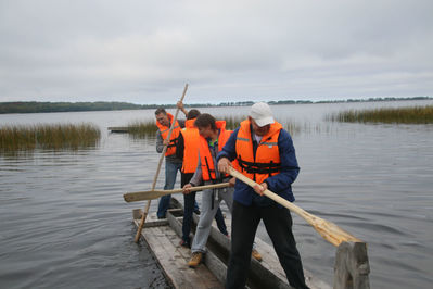 Мы прокатились на одной такой совмещенной с узким плотом долблёнке для закрепления понимания.