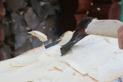 Допустим дерево есть. Секрет изготовления долбленки заключается в использовании свойства древесины деформироваться в процессе намокания и высыхания. Это как раз то, от чего страдают все плотники и мастера работы по дереву, например строители бревенчатых домов. Намокая или усыхая, дом быстро меняет свою форму. Но в случае с лодкой-долблёнкой все иначе. Это качество древесины большой плюс.