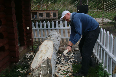 При такой работе очень быстро входишь в легкое и задорное состояние и совершенно не хочется останавливаться, пока вся кора не будет очищена с дерева. Так мы и сделали!