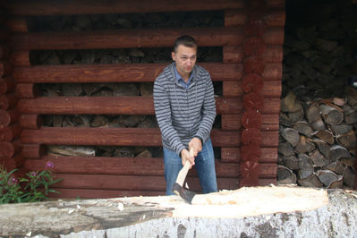 Особенно налегал на топор Женя, видимо у него скопилось много неиспользованной энергии либо он уподобил себя герою Челентано из "Укрощения строптивой", который как всем известно канализировал свои желанию через массированную рубку дров по ночам...