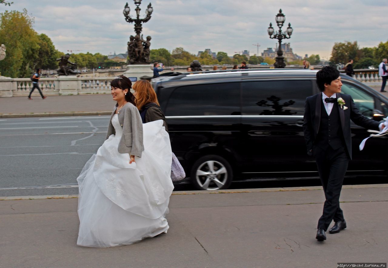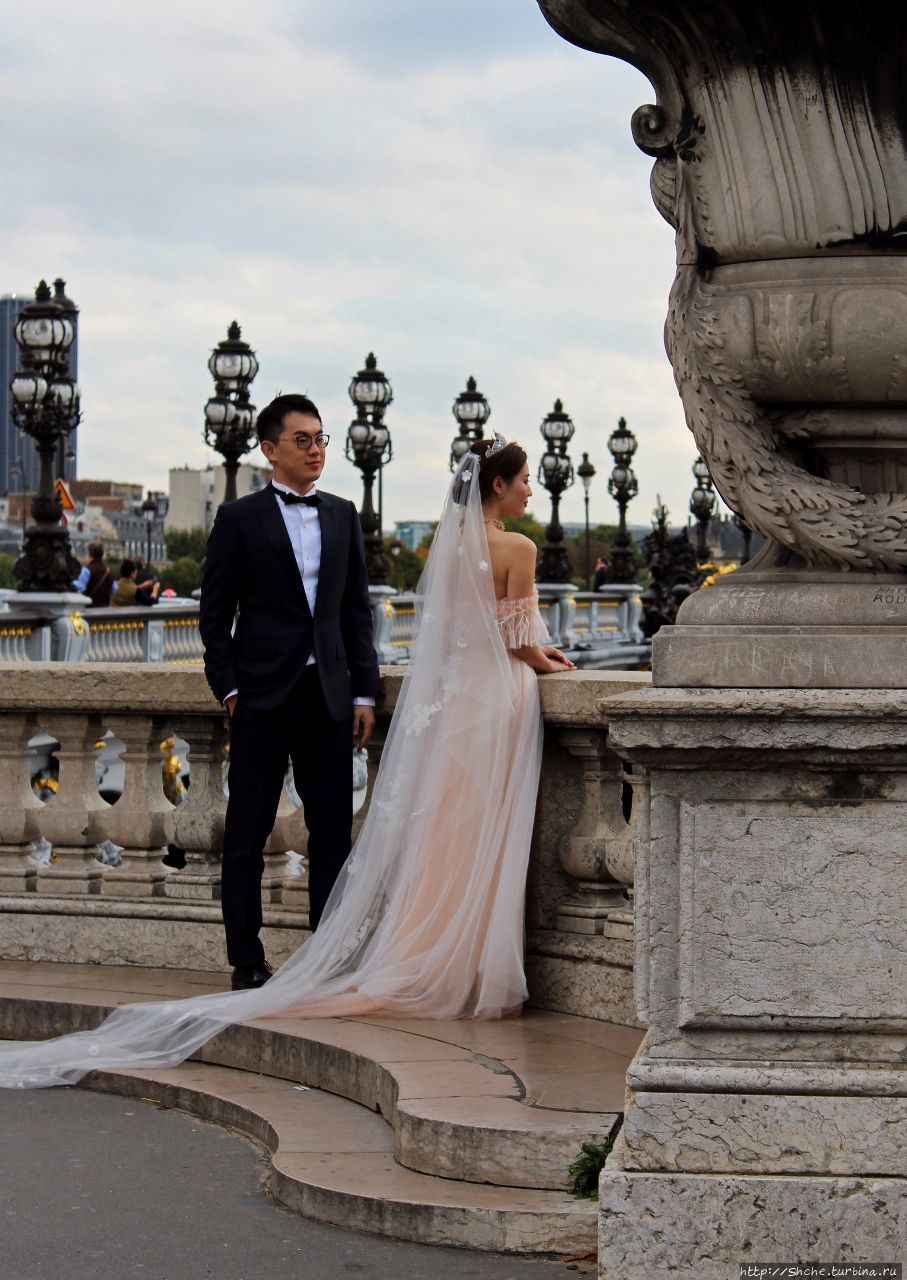 Размещение фото красивой пары молодоженов на мосту Александра Третьего в Париже во вчерашнем материале