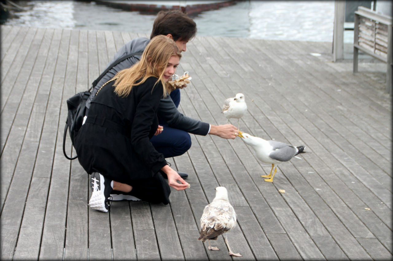 На эту счастливую пару я смотрел несколько минут. Они подставляли руки голубям и как дети радовались таким простым моментам.