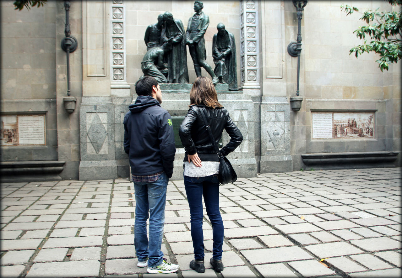 Вот эти влюблённые стояли и обнимались на улице Рамбла. Если бы вы смогли продолжить взгляд вправо, то увидели толпу туристов идущих на них. Через десять секунд парочка растворилась в ней и невозмутимо продолжила обниматься и целоваться не обращая ни на кого внимания. Их словно накрыли невидимым звуконепроницаемым куполом.