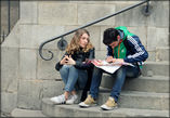 Я сам частенько располагался на ступеньках, чтобы отметить крестиком очередную посещённую достопримечательность либо заглянуть в карту метро. Только я вряд ли попал в чей-то объектив, поскольку был здесь совершенно один. Наверное, по этой причине я скорее всего, более чем другие, завистливо замечал людей, которым в этой поездке повезло больше:)