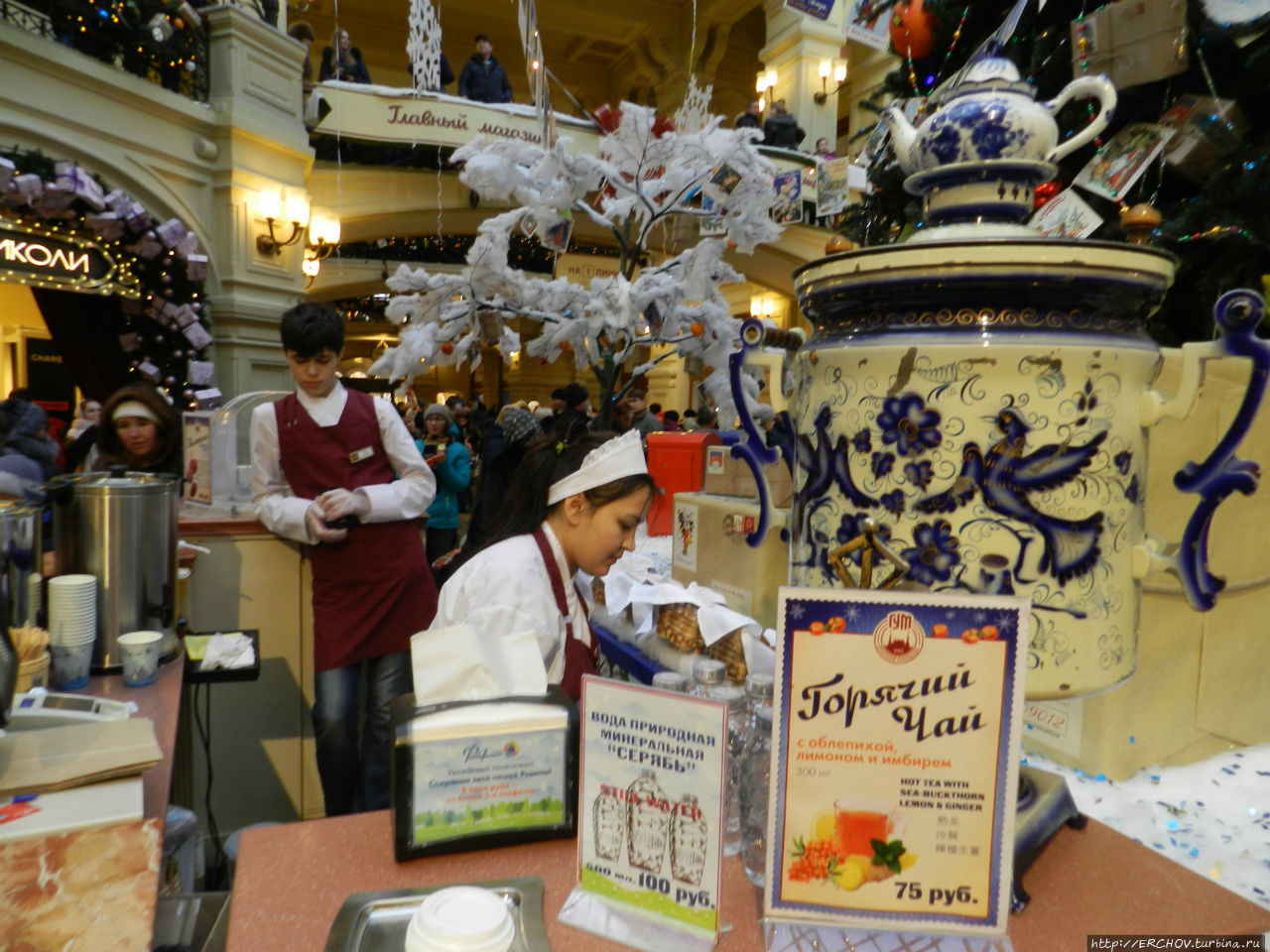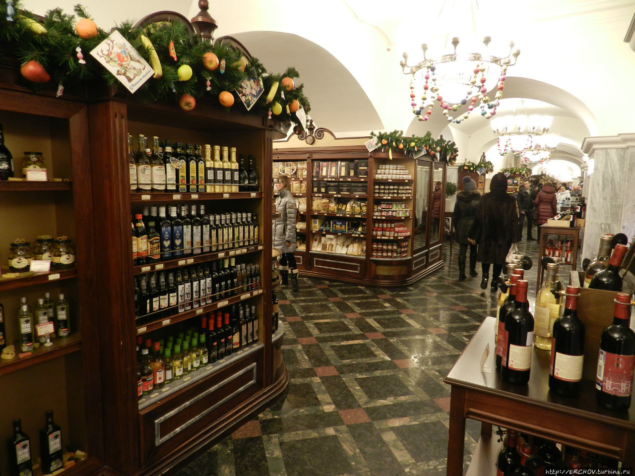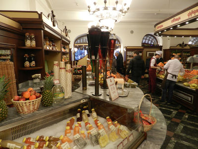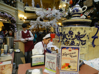 Впрочем, контроль здесь не жёсткий. Во всяком случае Путин со Сталиным вполне спокойно его прошли. ГУМ — это вечный праздник жизни! Кто-то приходит сюда покупать, кто-то посидеть, погреться, а кто-то заходит просто посмотреть. Моя знакомая работает в ГУМе в парфюмерном отделе. По её словам, продажи в магазине конечно упали, однако, некоторые по-прежнему, как покупали дорогие духи, так и покупают (теперь уже по 100-200 тыс). В любом случае, в продуктовом отделе ажиотажа мы не заметили. Здесь невольно вспоминается старый советский анекдот, как чукча попросил таксиста отвести его в Принцип, ибо кто-то ему сказал, что в принципе в продаже есть всё.Друзья, будем верить во всё самое-самое лучшее, во всё самое-самое доброе, во всё самое-самое хорошее! Всех вас с Новым 2016 годом и с Рождеством!