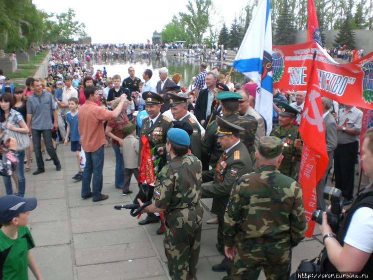 Зато 9 Мая, заполненный людьми, он выглядит торжественным и праздничным. Становится шумным. Фонтаны и монументы усыпают цветами. В этот день на легендарный холм стекается большая часть жителей города, а так же те, кто приехал специально, чтобы посмотреть на праздничный Волгоград в День Победы.