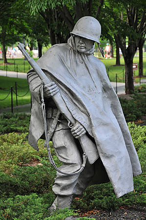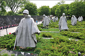 В Вашингтоне много всяких монументов, памятников. Я даже придумал такой эпитет Вашингтону — "город-монументов". Всех гостей города обычно водят на экскурсию по мемориалам разных войн, в которых участвовала Америка — они все в центре города. Один из них — Мемориал Корейской войны. Впечатление он производит довольно сильное, даже большее, чем мемориал Вьетнамской войны (о нем рассказ чуть позже). Что же это за скульптурная композиция на фото? И что это за война, о которой мы так мало знаем? Попытаемся хоть поверхностно разобраться...