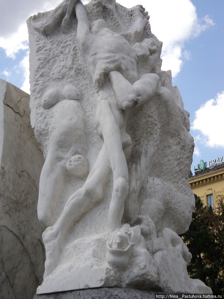 Осматривая достопримечательности в центре Вены наш гид подвёл нас к мемориалу и сообщил, что здесь будет место встречи нашей группы. А о самом мемориале коротко сказал, что он посвящён жертвам фашизма и покаянию. Я машинально для себя отметила — о каком покаянии идёт речь? Но спросить уже было не у кого, гид ушёл. Если честно, то все эти памятники не произвели на меня никакого впечатления. Слишком уж всё было абстрактно. Но снимки я сделала.