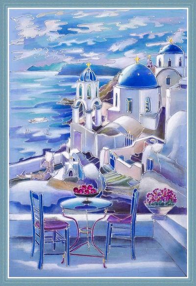 Это первая из серии работ о Греции. Нарисована она на ткани французский креп голубого цвета. Как раз из такой ткани шьют платья, а я вот на ней рисую батики пастелью и контурами по ткани. Хочу сделать еще аналогичный витраж на стекле. Очень нравятся мне витражи — как сделаю — покажу. Вдруг кто-то захочет приобрести какую-то из моих работ — буду рад! Уже есть прецеденты — две моих работы оказались в Сыктывкаре и на Камчатке. Не буду открывать тайны, кто из турбиновцев поддержал меня, как художника. Но я очень благодарен этому человеку! И, судя по отзывам, картины о Праге и Амстердаме теперь радуют глаз новых владельцев. Их я рисовал по своим впечатлениям от посещения этих мест...