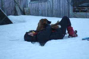 Не успела я еще слезть со снегохода и нормально познакомиться со своими спутниками, как уже пошла общаться с местными собаками...ну и походу дела с местными жителями...