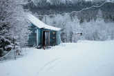 Сугробы, елки, даже негде присесть. Может стоит отойти куда-нибудь в сторонку.