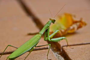 Богомол охотится не только на мелких насекомых, но и на небольших лягушек и ящериц, известная даже одна история когда на глазах у удивленной толпы богомол сразился с воробьем и заставил его отступить... так рождаются легенды. Впрочем, подобной агрессивностью на охоте отличаются только самцы богомола.