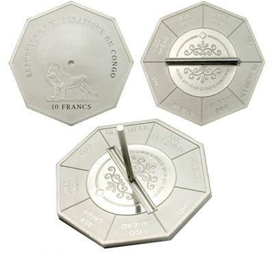 её реверс напоминает чем -то либерийскую монету- трансформер "Солнечные часы". При этом реверс оформлен в виде своеобразной рулетки с различными вариантами решений.Аверс — стандартен, но небольшая выпуклость позволяет крутить волчок.