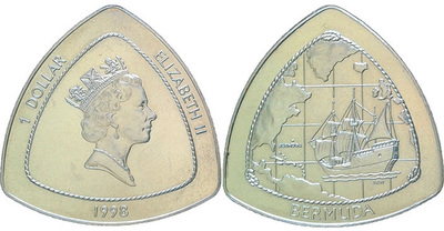 Сам бог велел монеты для Бермуд делать в виде треугольников, обыгрывая беспроигрышную тему "Бермудского треугольника".