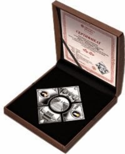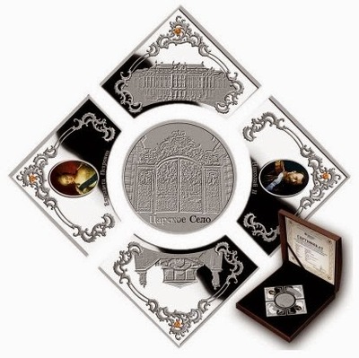 Реверс: В центре отштамповано изображение ворот при входе во внутренний двор Екатерининского дворца, что на территории нынешнего музея-заповедника «Царское Село». Верхняя часть украшена видом на фасад Екатерининского дворца. На нижней части запечатлен вид на галерею Камерона. Каждый элемент декорирован орнаментом в стиле рококо. Боковые элементы украшены янтарными вставками.