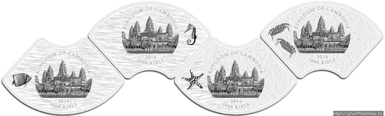 Для Камбоджи монеты-пазлы серии "Открытие природы" (Discovery of Nature) выпускал также Сингапурский монетный двор.