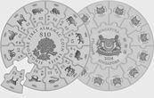 На реверсе каждой из 12-ти частей составной монеты показан один из знаков зодиака, обозначен номинал и соответствующий знаку зодиака год.