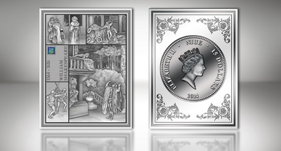 На реверсе серебряной монеты находятся изображения четырех сцен из пьесы: уличная стычка между Монтекки и Капулетти, сцена на балконе, Джульетта и монах Лоренцо, Ромео в склепе Капулетти. В левой части реверса вертикально расположены надписи – «1564 — 1616» (годы жизни Шекспира), «WILLIAM SHAKESPEARE». Также на реверсе есть вставка – кристалл NanoJems®, включающий полный текст трагедии – 25 948 слов.