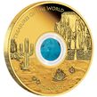 Реверс (дизайнер Natasha Muhl): вставка круглого прозрачного медальона, содержащего диск из натуральной бирюзы. Медальон окружен художественной композицией, представляющей юго-западные пустынные ландшафты в Северной Америке, с изображениями кактуса, ветреницы и вертикальной скалы. Дизайн реверса также включает в себя надписи «TREASURES OF THE WORLD» и «TURQUOISE» и знак «P» – традиционное обозначение торговой марки Монетного двора г. Перт.