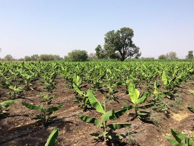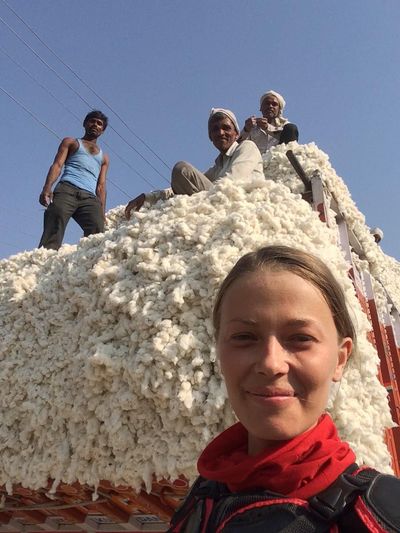 Снова проезжали деревушки, но уже не такие милые. Было интересно встретить в одной из них загружаемый хлопком грузовик, приветливые фермеры нам даже попозировали. Вдоль дороги было огромное количество банановых плантаций и кукурузных полей. И тут же иссохшие речки (приближается апрель — самый засушливый месяц в центральной Индии).