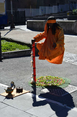 Это театр (продуманы до мелочей наклон, скорость/медленность шага, ритм/звук монет в кубышке, всё-всё).