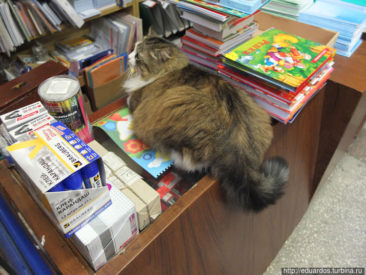 А один персонаж запомнился мне ещё с самой первой поездки в этот дивный прибалтийский край. Этот здоровяк живёт в книжном магазине на центральной улице Зеленоградска. Я узнал его сразу ещё издали, когда он возвращался с прогулки к месту своего лежбища, на витрине, прямо у кассы)))