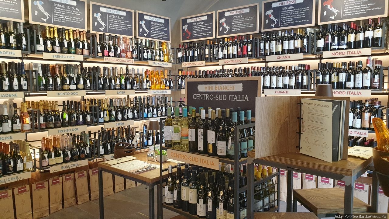 В каталоге заведения более 2000 наименований вин, представляющих все итальянские территории . Выбор для знатоков, любящих благородные имена и небольшие винодельни. Так на полках Signorvino можно найти престижные марки — от Masseto до Sassicaia, до Barolo Monfortino Джакомо Контерно — но также и марки небольших компаний, которые часто невозможно найти самостоятельно. А среди раритетов есть даже Витовска Матея Скерля, обнаруженная между Карстом и Словенией. В то время как самые популярные вина компании Falesco прибывают из Лацио, как и Verdicchio Anfora "De Coccio" и Roma Doc "Capoccia" с винодельни Tenimenti Leone.