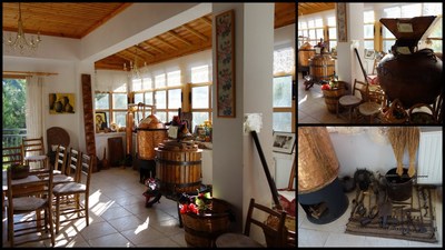 Несмотря на то, что жили мы в Пафосе, благодаря нашей экскурсии в горы Троодос, мы попали в винодельческий регион Wine Villages of Limassol. Для начала здесь мы отправились на небольшую, семейную винодельню Zenon, которая находится недалеко от деревни Омодос. Как и положено, при магазинчике есть небольшая экспозиция, в которой представлены приспособления для производства вина и еще кое-какая домашняя утварь киприотов.