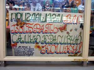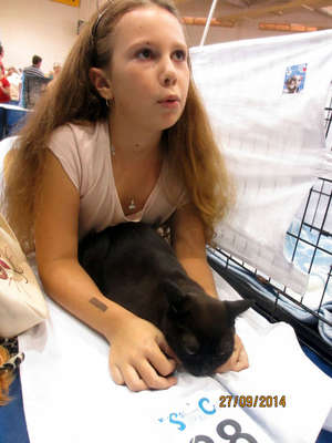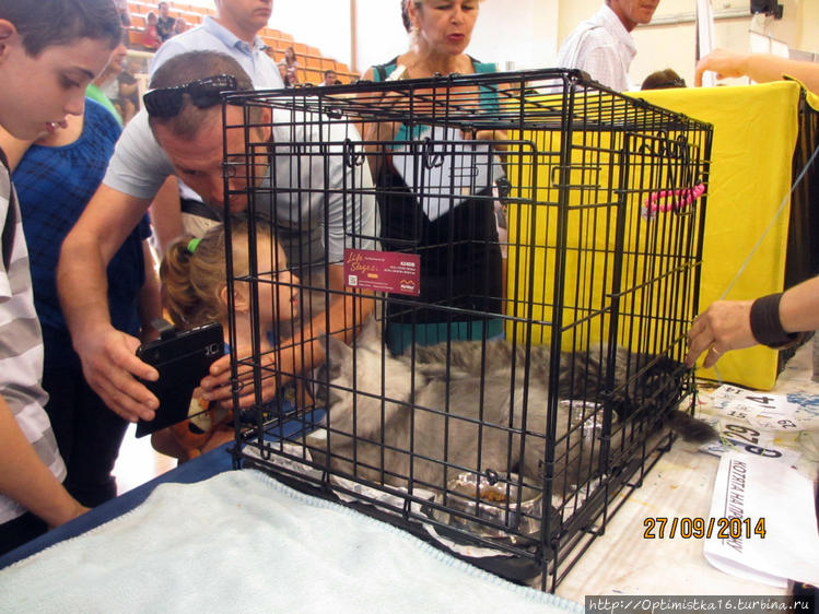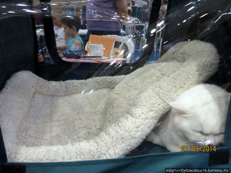 Бедные котики устали позировать на руках у хозяев. Некоторые уже откровенно отворачивались от назойливых посетителей и пытались заснуть, что им не всегда удавалось, поскольку очередной ребёнок пытался погладить киску, протиснув руку в клетку.Хорошо, что было в помещении не жарко, работали кондиционеры.