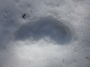 Сергей любил ходить в караул, — по его мнению это гораздо лучше, чем чистить снег или масляные пятна на объекте или намывать казарму, будучи в наряде. Однажды ночью, стоя в карауле, он видел в лесу волка. Диких зверей мы с ним, обследуя бывшие позиции, не обнаружили, но вот следы на снегу показались любопытными. Интересно, какому зверю принадлежит этот след?