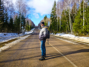 До Первопрестольной мы не доехали около 80 км, и на рассвете вышли в старинном русском городке Клин, что стоит на северных подступах к Москве. Померзнув около часа на местном автовокзале, мы сели в автобус, курсирующий по деревням Клинского района Московской области и отправились к "местам боевой славы".