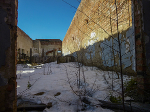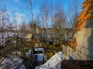 Мы идем мимо развалин по обледеневшей дороге. Плац, где совершались построения, зарос деревьями, от него и воспоминаний не осталось. Вот и казарма, ставшая на целый год домом для моего мужа и его сослуживцев.