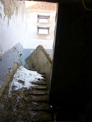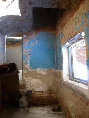 В этом, ныне тоже разрушенном здании происходило множество приятных для солдата моментов. Важнейший из них — это сон. Спать приходилось на трубах вот в этой комнате, но тогда это казалось очень удобным и комфортным
